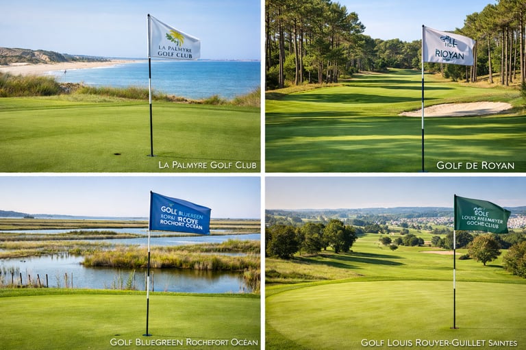 Dans un rayon de 100 kilomètres autour de La Palmyre, la Charente-Maritime et ses environs proposent une sélection de golfs de qualité, mêlant technicité, nature et ambiance conviviale.